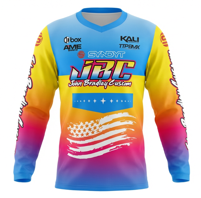 Our Jerseys are made with with fade free sublimated graphics and design with moisture wicking polyester fabric. They are vented along the side of the body and underneath the arms that allows an improved air flow and designed by riders that love that athletic fit.