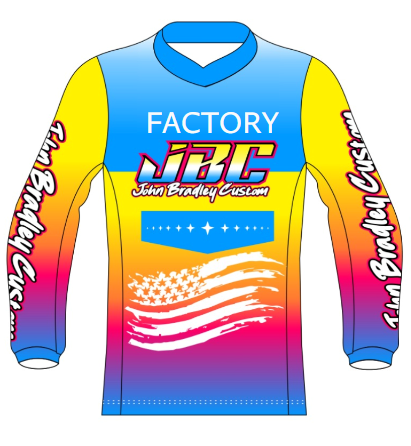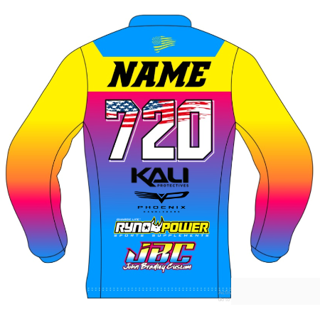 Our Jerseys are made with with fade free sublimated graphics and design with moisture wicking polyester fabric.  They are vented along the side of the body and underneath the arms that allows an improved air flow and designed by riders that love that athletic fit.